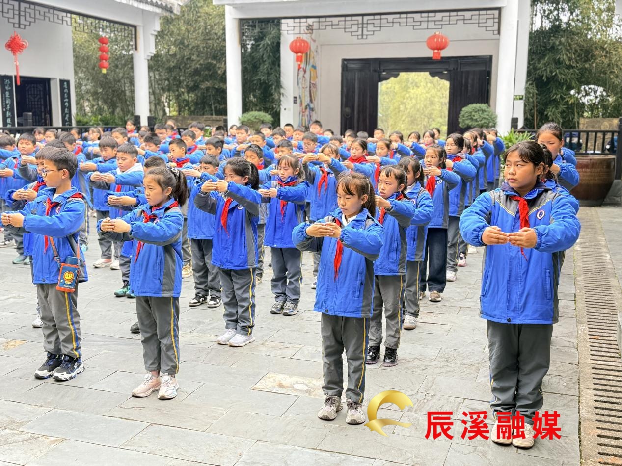 (辰溪縣思源實驗學校學生們在大酉書院明倫堂前行拜師禮)