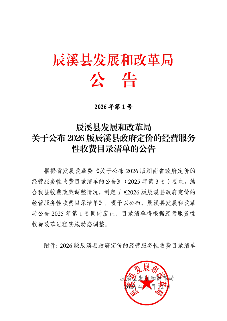 發(fā)布時(shí)間:2026-01-13 15:04 信息來源:辰溪縣發(fā)展和改革局