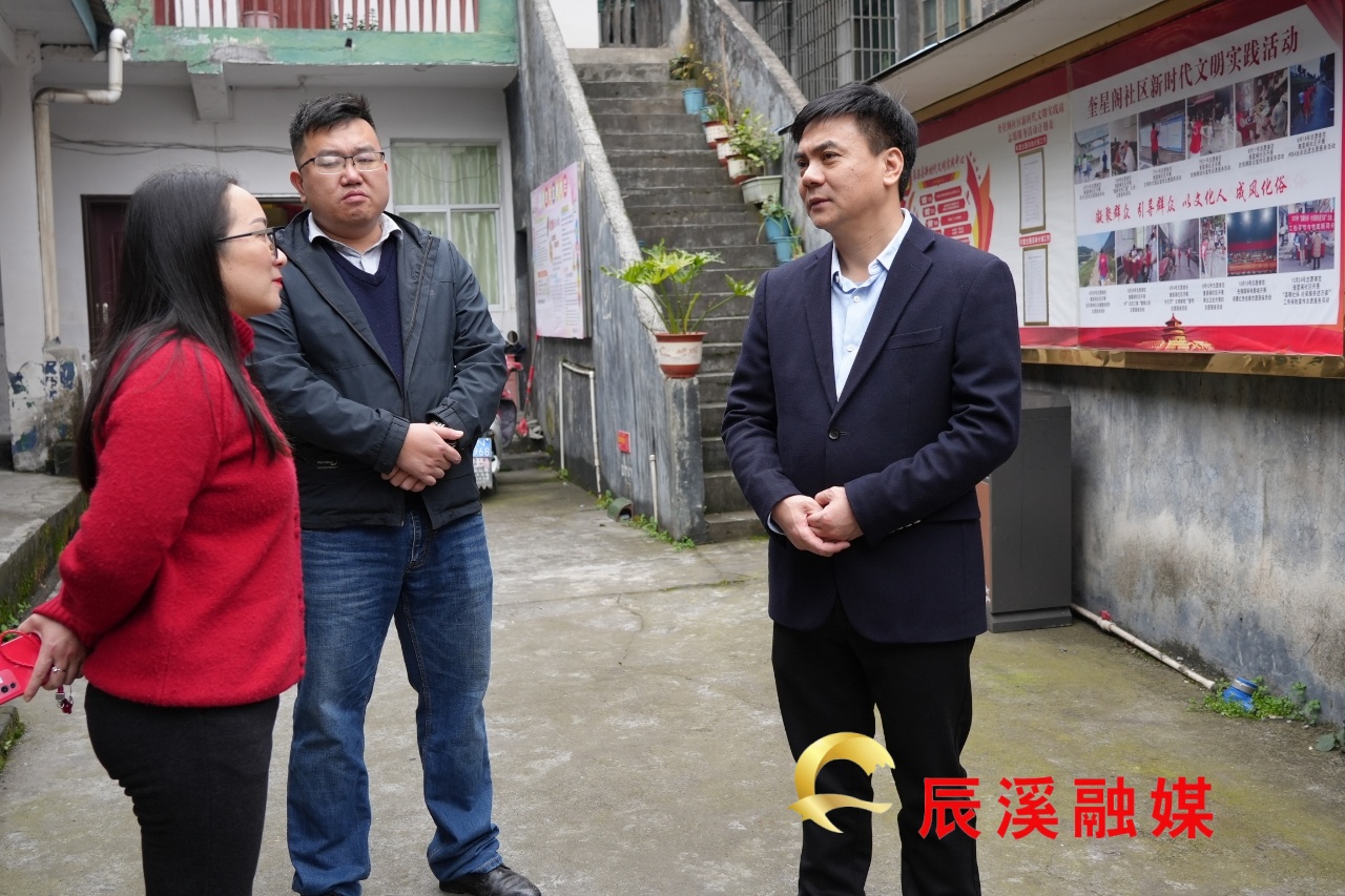 2月15日,縣委副書記、縣長唐旭峰深入辰陽鎮督導春節期間城市運行管理和煙花爆竹禁燃工作。圖為唐旭峰在奎星閣社區督導調研。