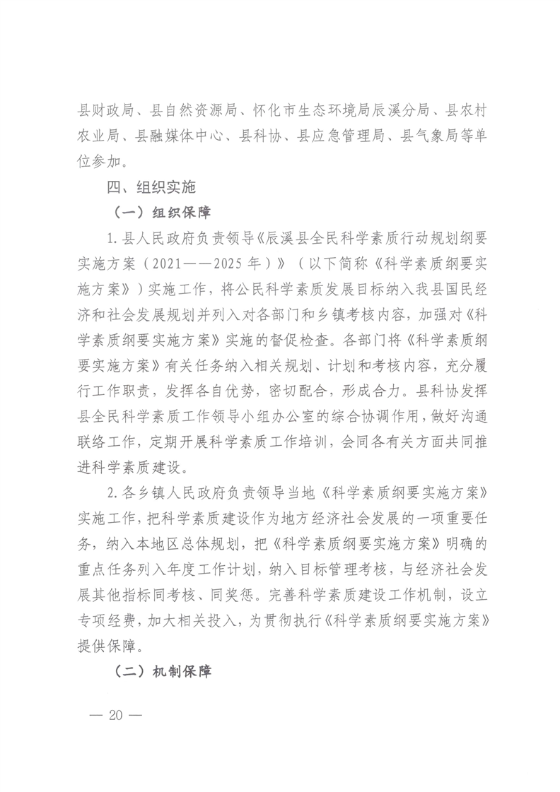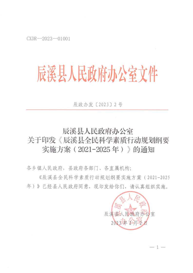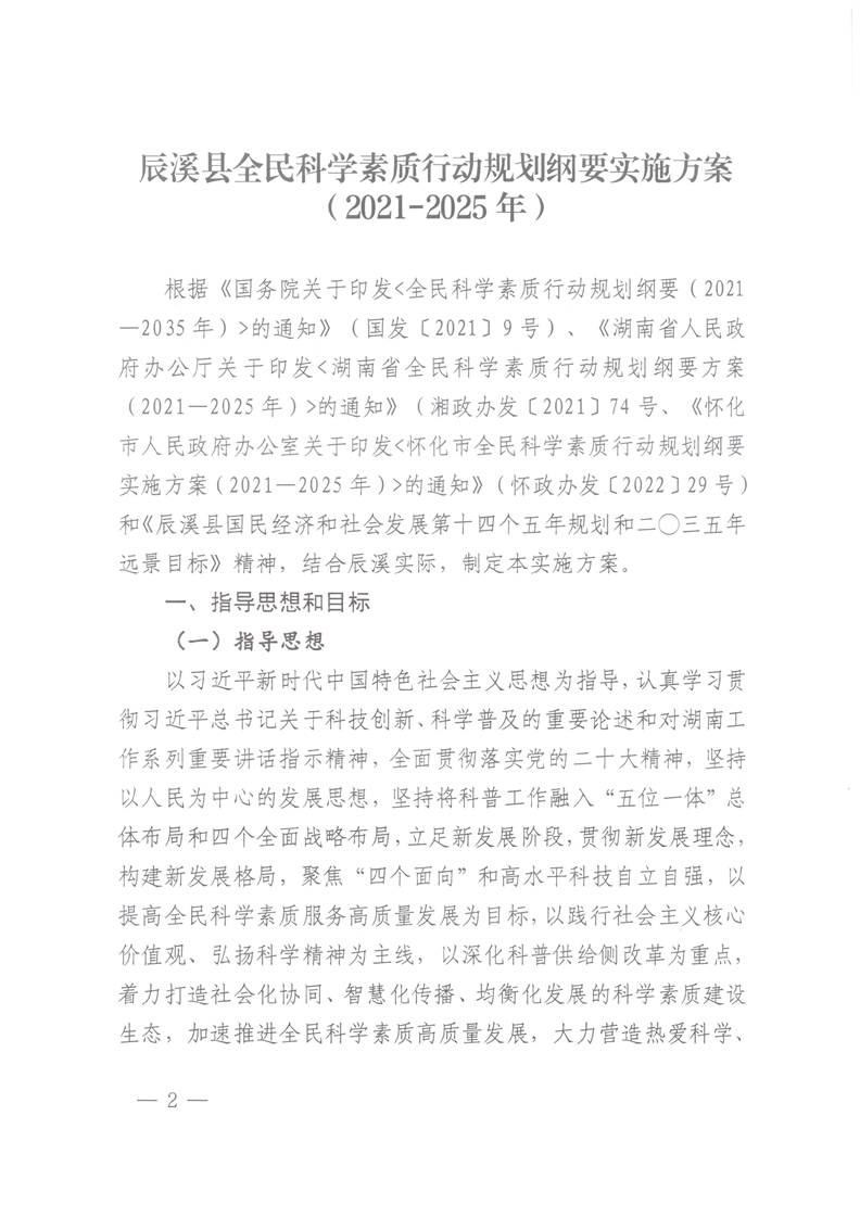 辰溪縣人民政府辦公室關于印發《辰溪縣全民科學素質行動規劃綱要實施方案(2021-2025年)》的通知