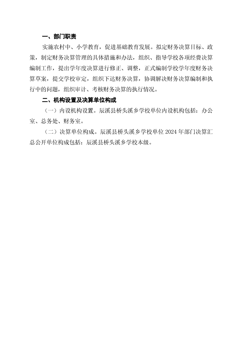 辰溪縣橋頭溪鄉學校2024年部門決算公開說明