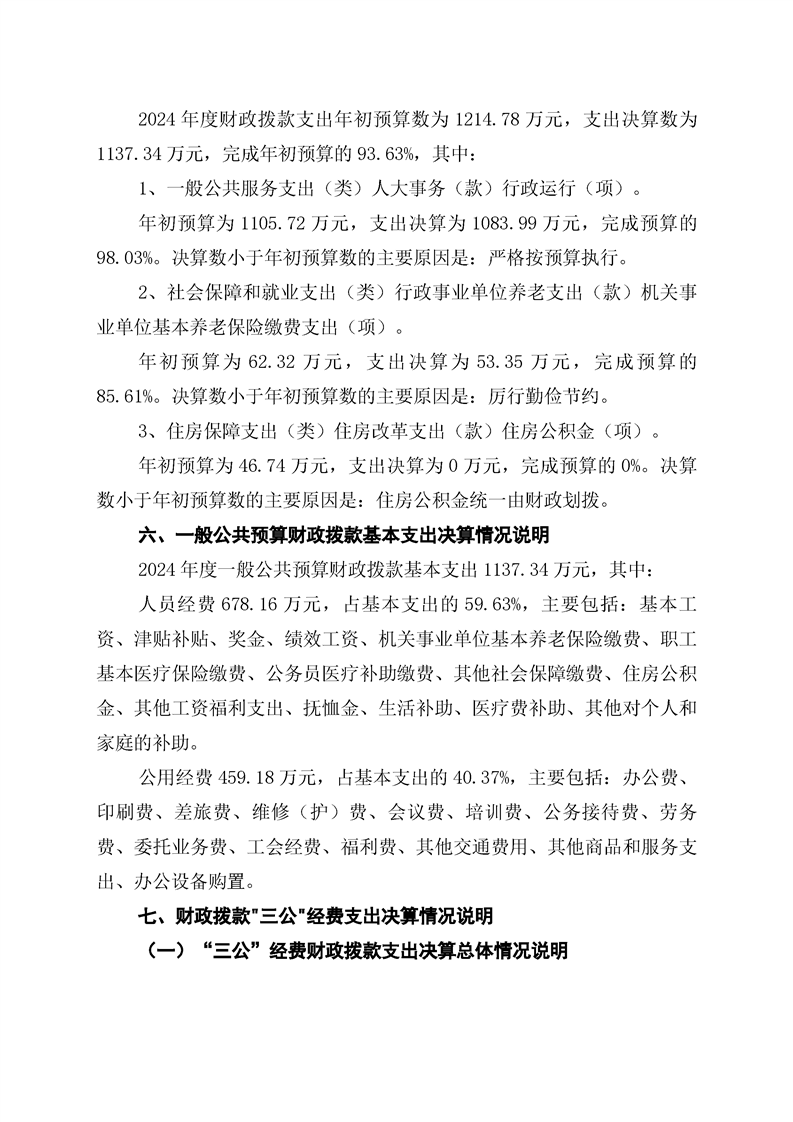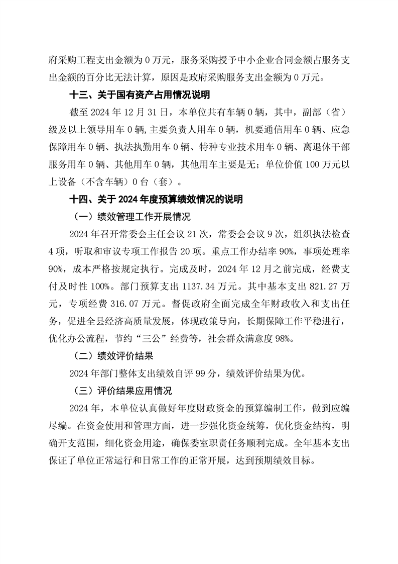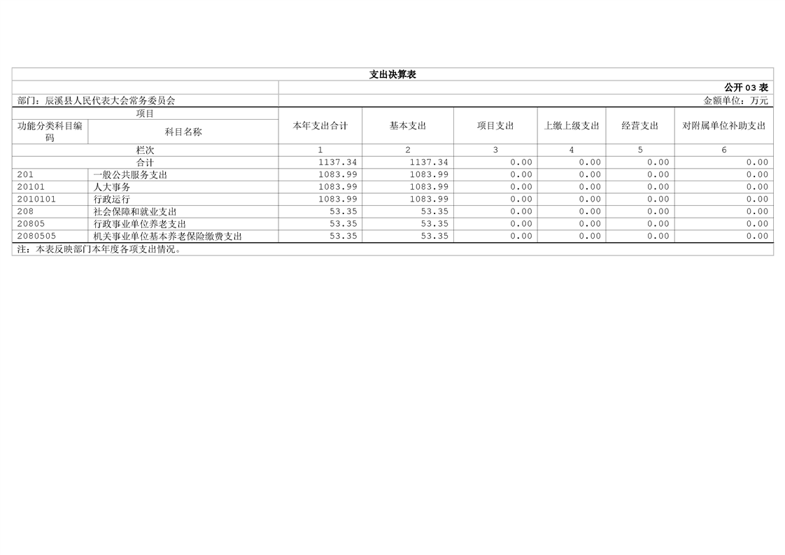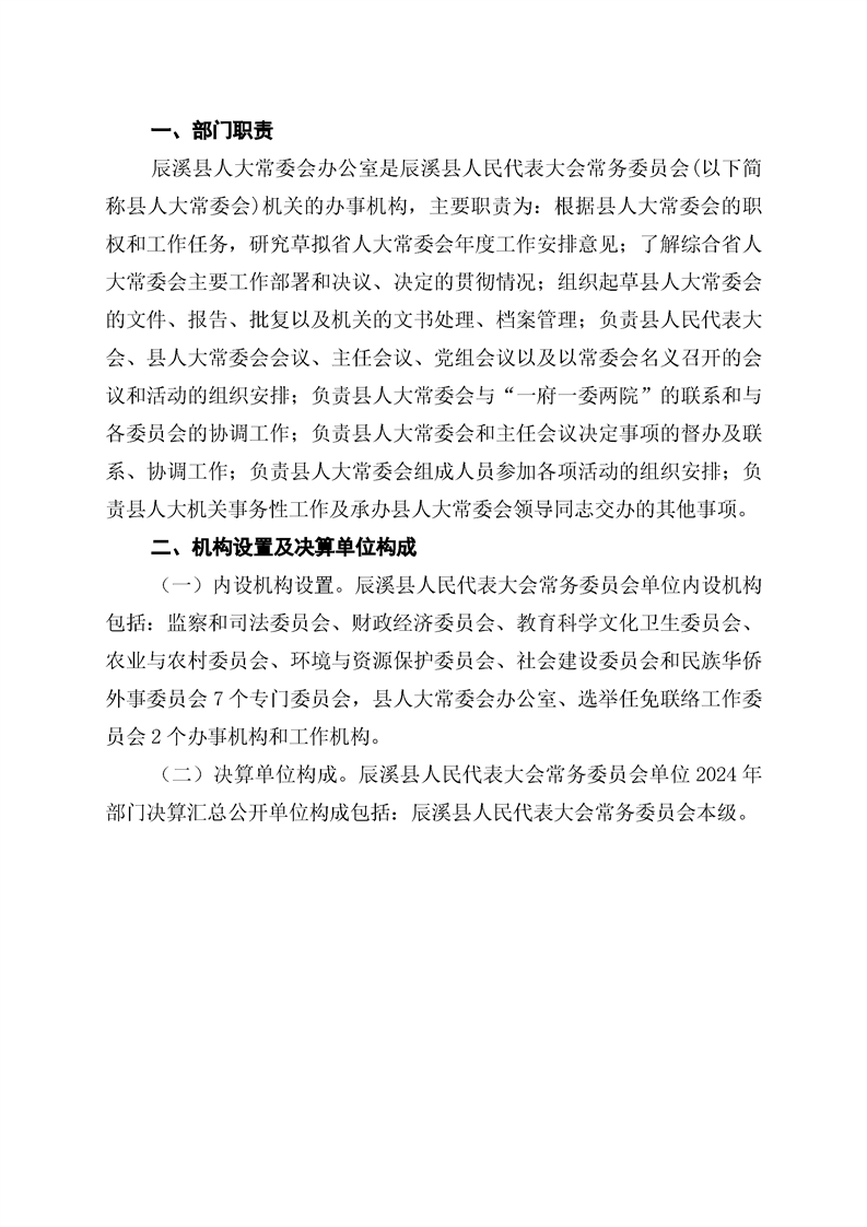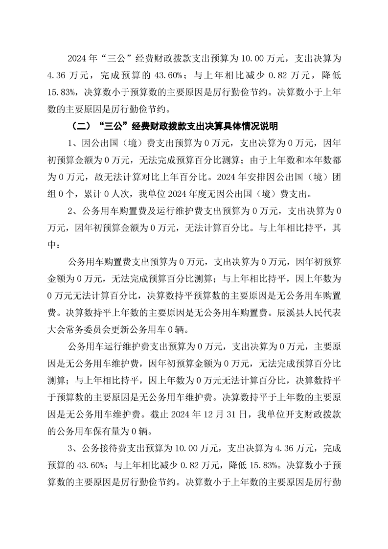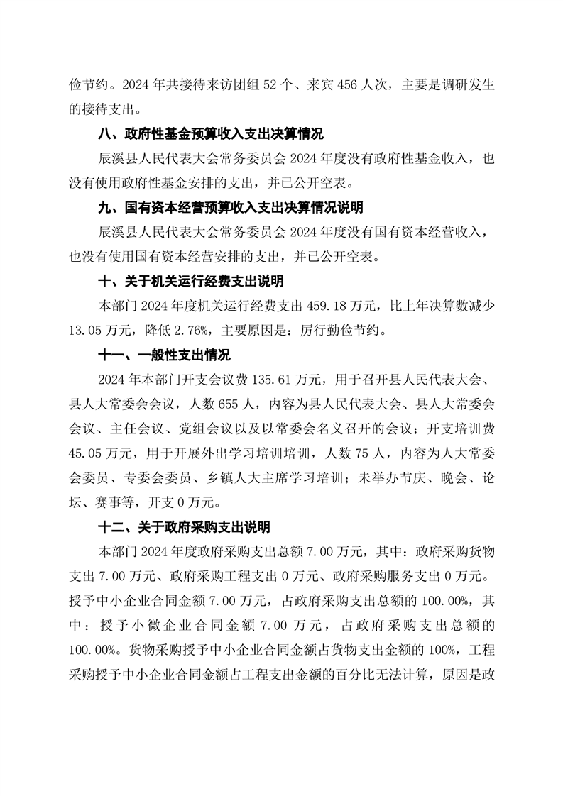 辰溪縣人民代表大會常務委員會2024年部門決算公開說明