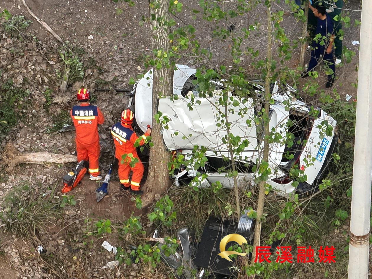 辰溪:小轎車側翻致一人被困 消防緊急救援