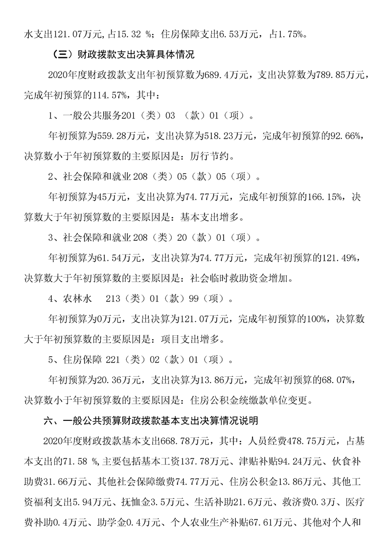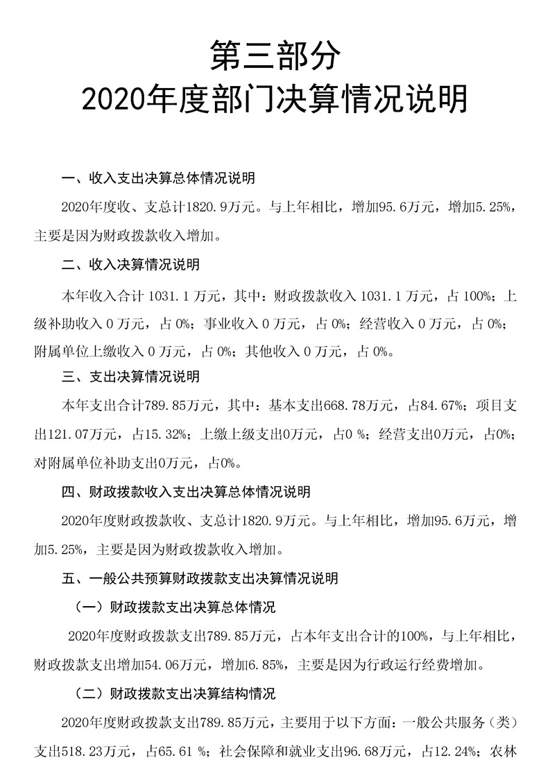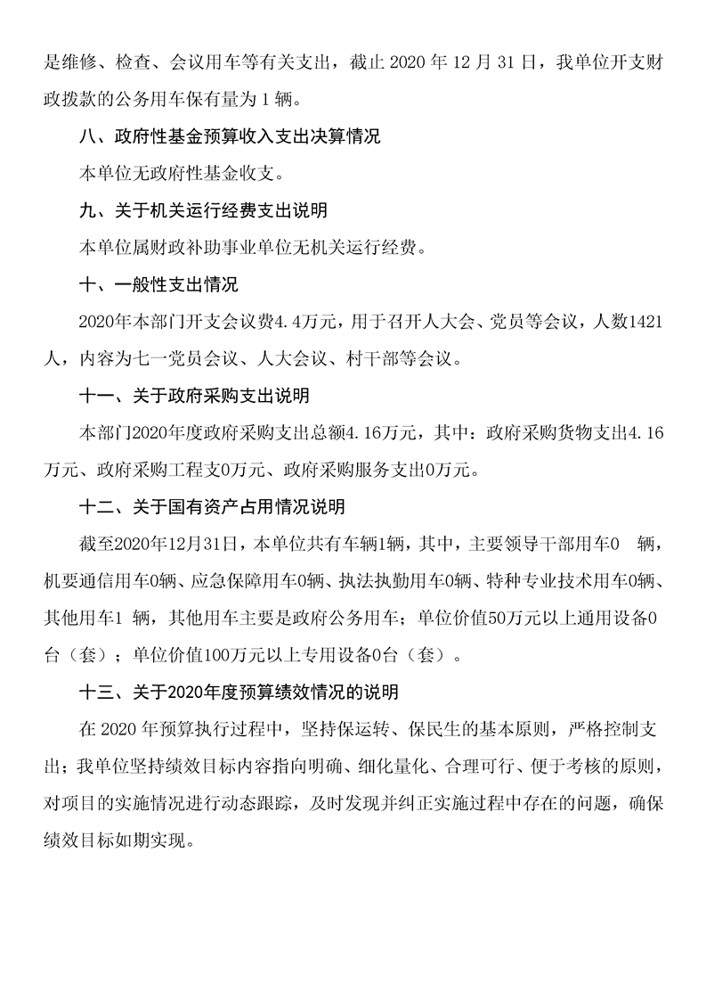 2020年度大水田鄉人民政府部門決算