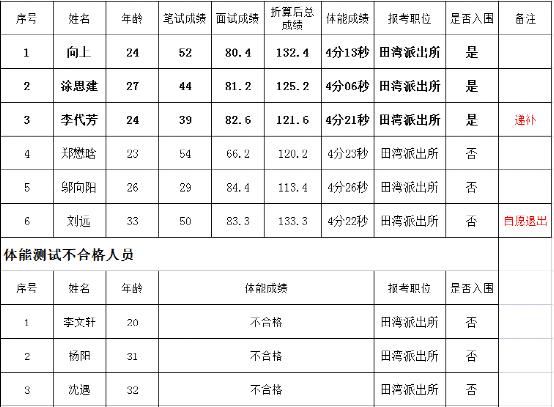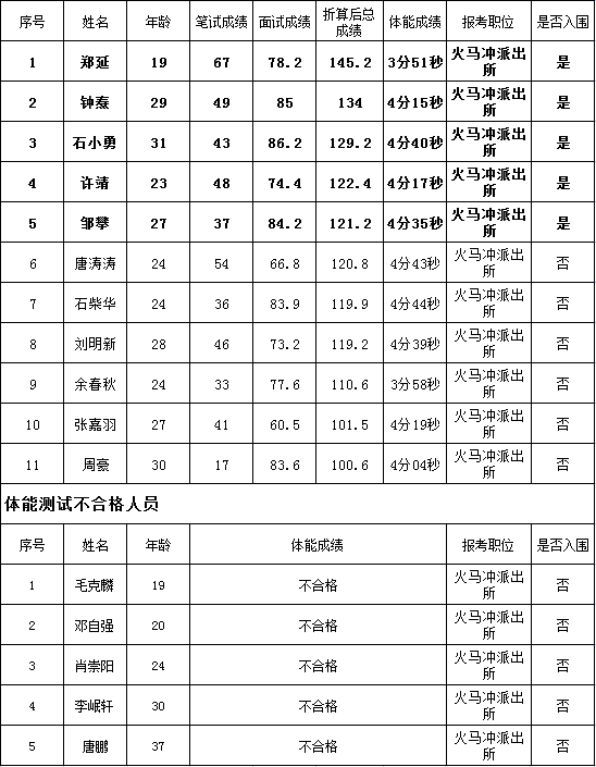 火馬沖派出所聘用名單(職位數5人)