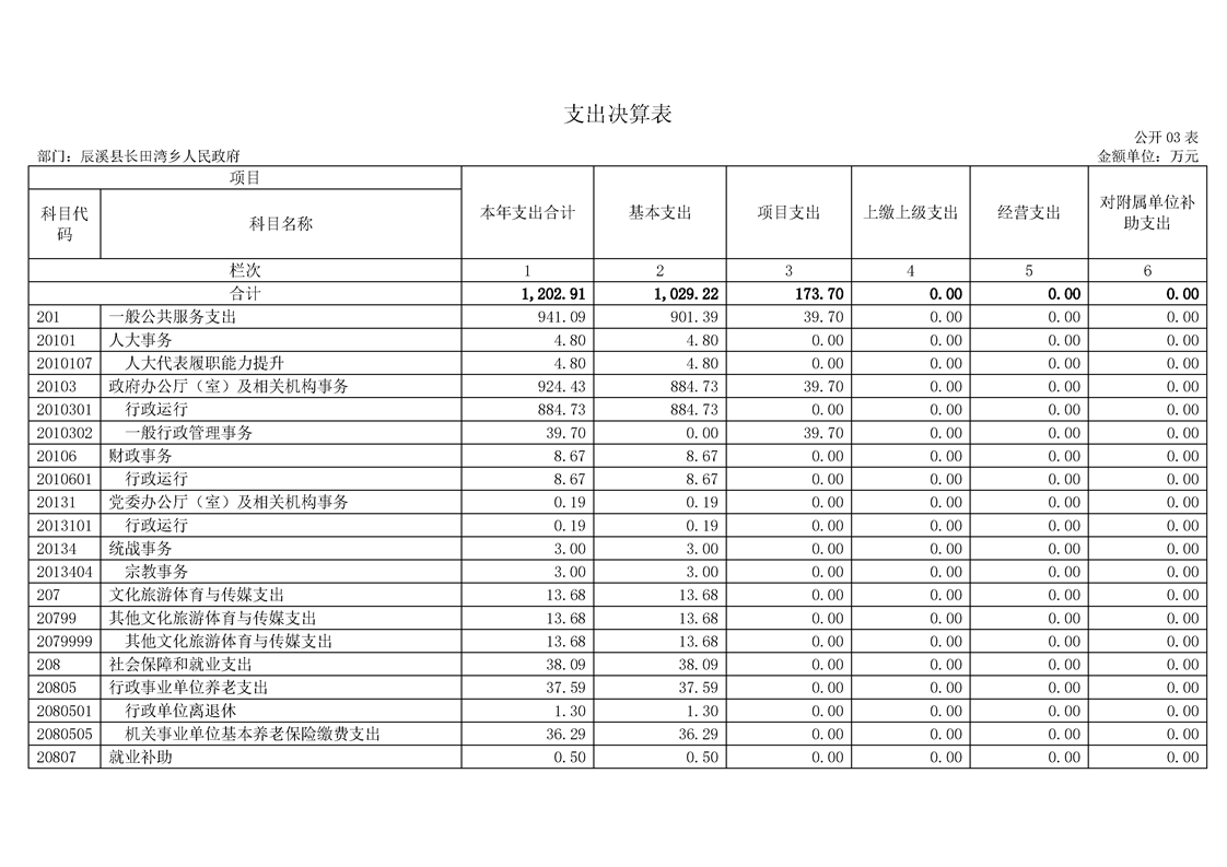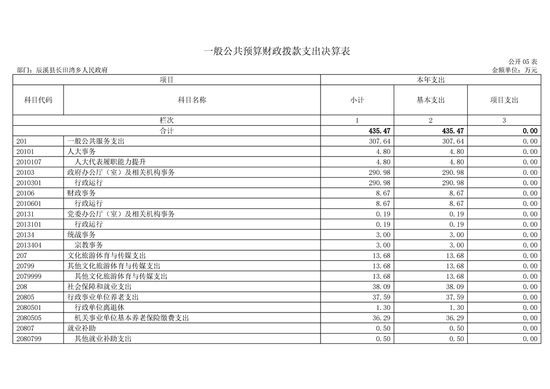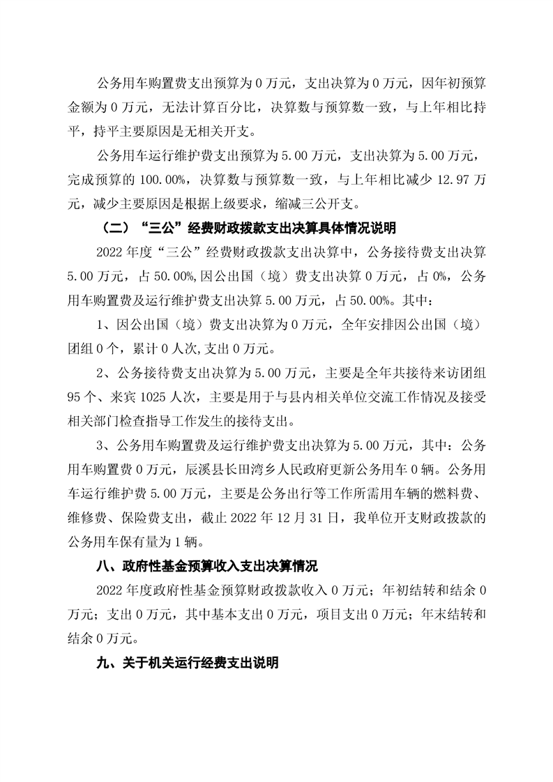 2022年度辰溪縣長田灣鄉人民政府部門決算