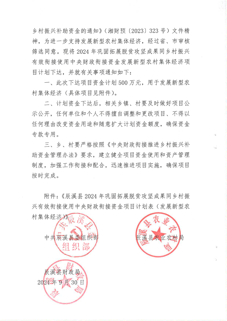關(guān)于下達(dá)2024年鞏固拓展脫貧攻堅(jiān)成果同鄉(xiāng)村振興有效銜接使用中央財(cái)政銜接資金發(fā)展新型農(nóng)村集體經(jīng)濟(jì)項(xiàng)目計(jì)劃的通知
