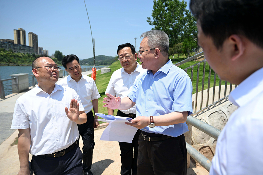 5月28日,沈曉明在?水河茅谷沖溪段了解截污納管等整改措施的實施進度。