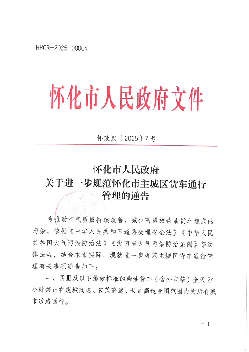 懷化市人民政府關(guān)于進(jìn)一步規(guī)范懷化市主城區(qū)貨車通行管理的通告