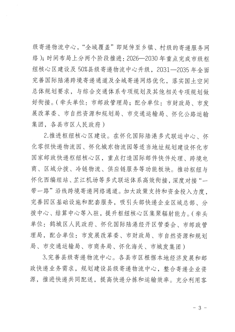 懷化市人民政府印發《關于建設國家郵政快遞樞紐城市促進懷化市郵政快遞業高質量發展的實施意見》的通知