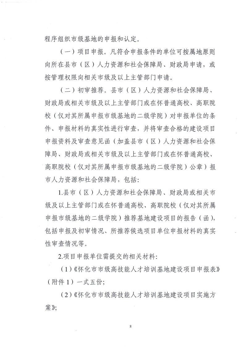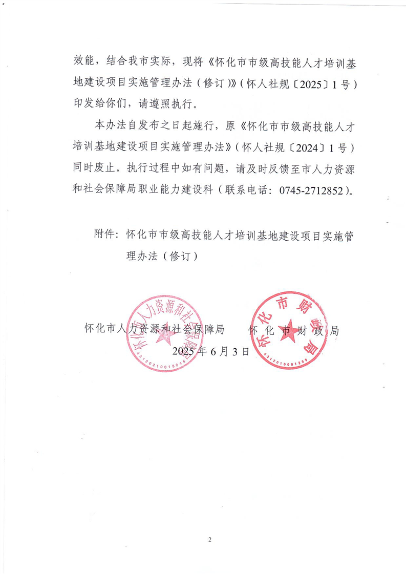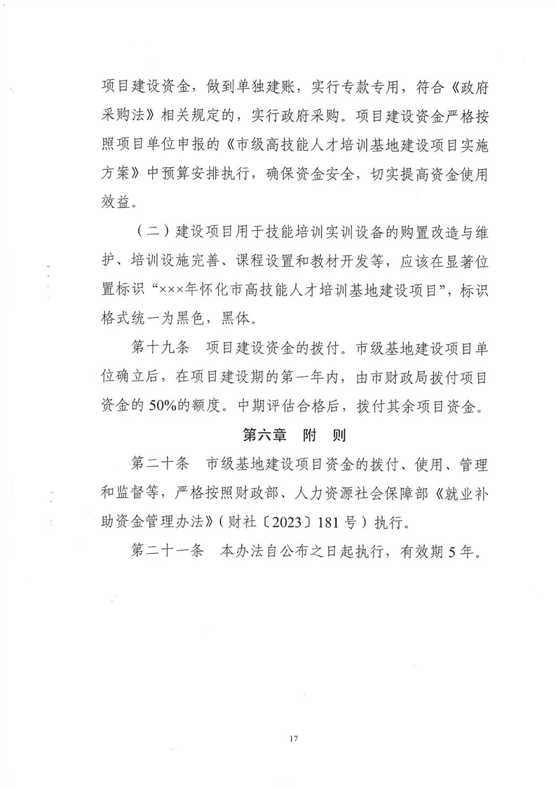 關(guān)于印發(fā)《懷化市市級(jí)高技能人才培訓(xùn)基地建設(shè)項(xiàng)目實(shí)施管理辦法(修訂)》的通知