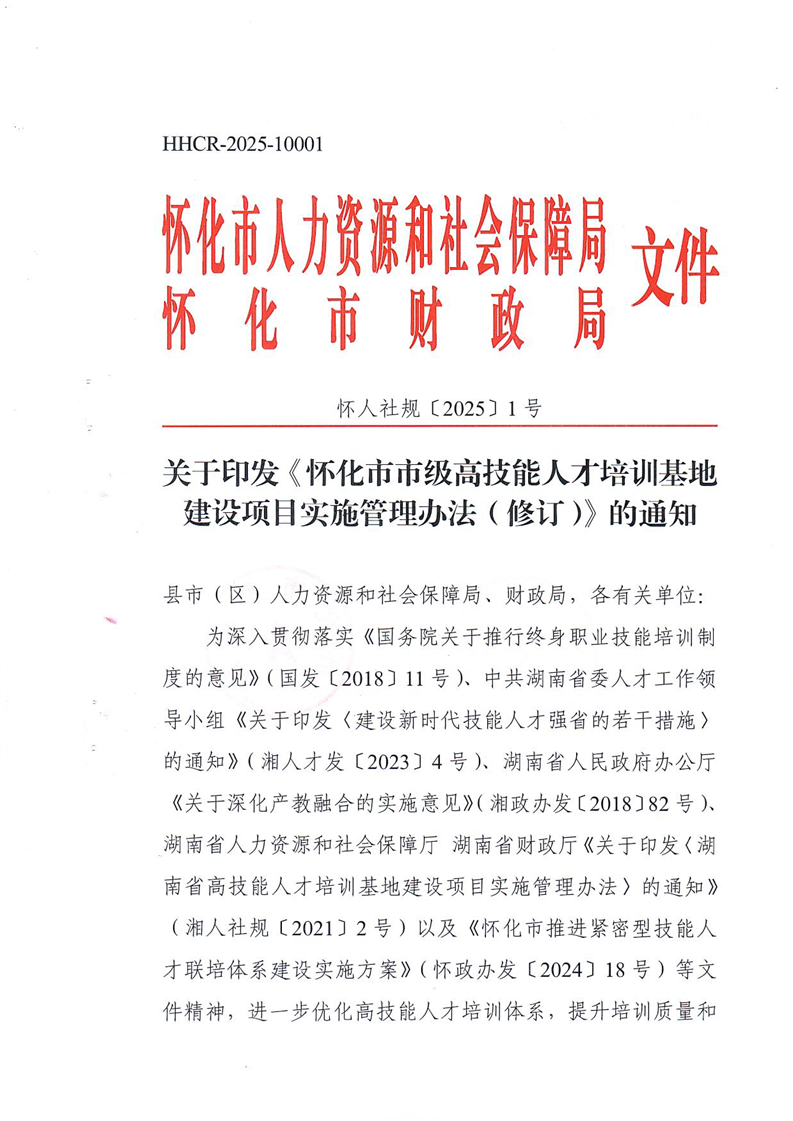 索引號(hào):431200/2025-018274 文號(hào):懷人社規(guī)〔2025〕1號(hào) 統(tǒng)一登記號(hào):HHCR-2025-10001