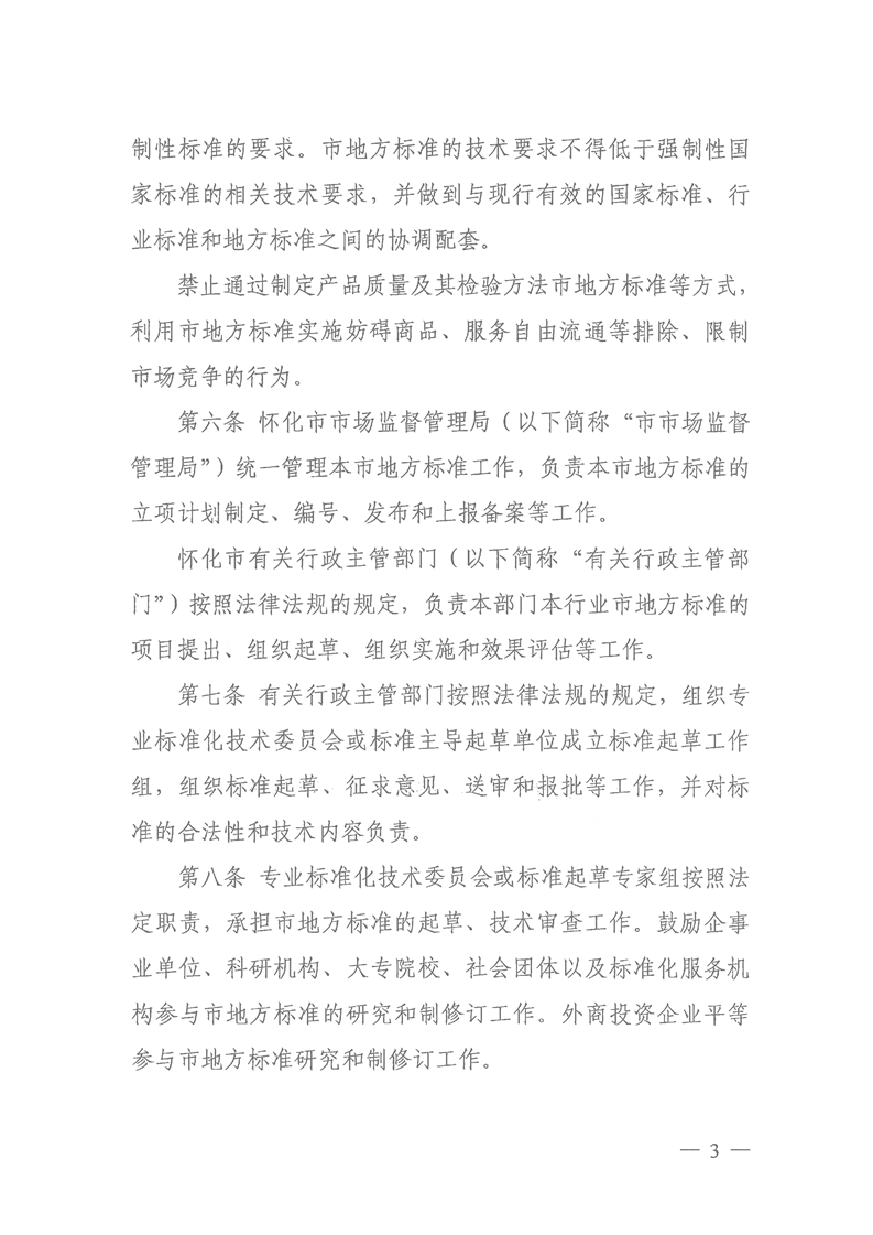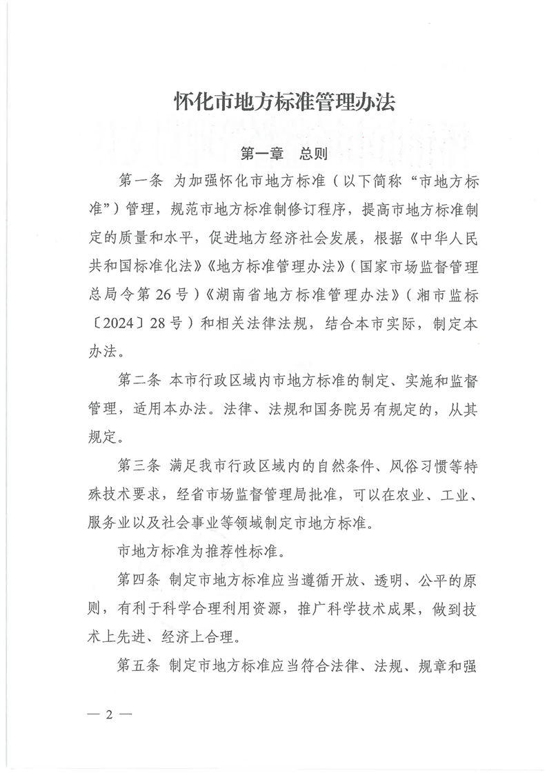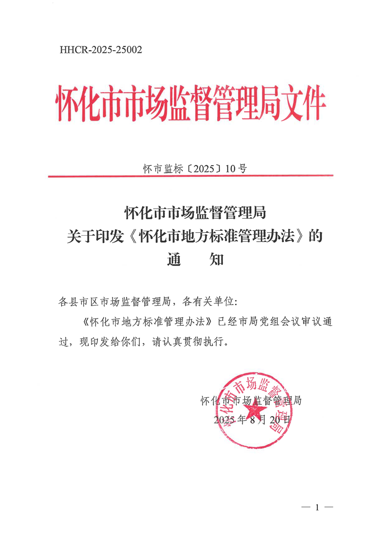 關于印發《懷化市地方標準管理辦法》的通知