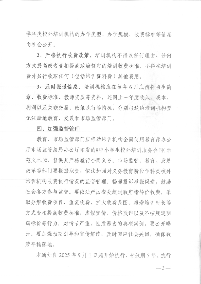 關于懷化市義務教育階段學科類校外培訓收費有關問題的通知