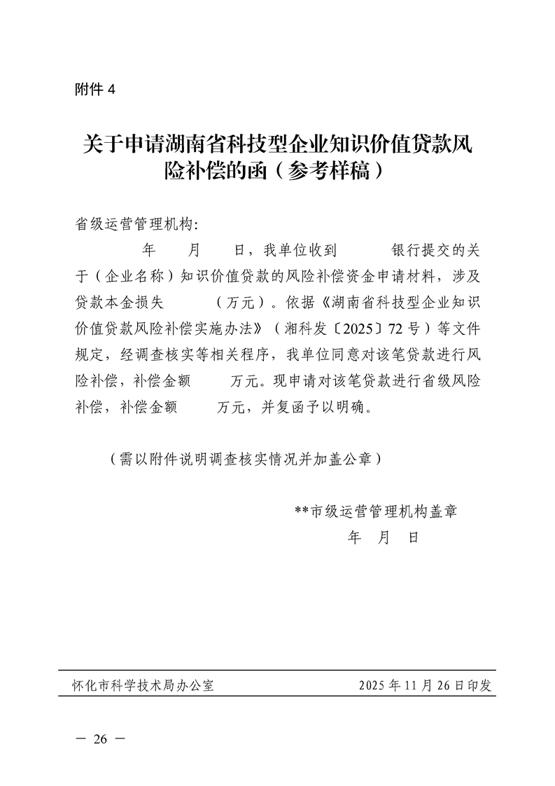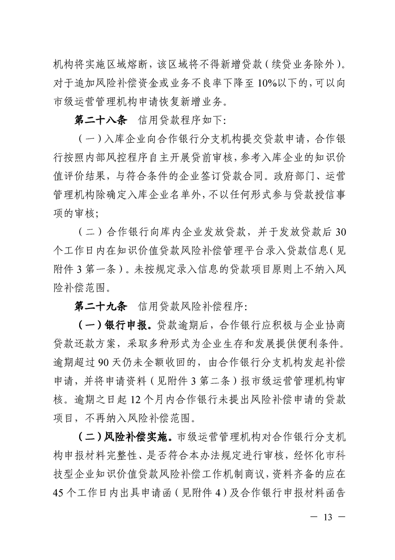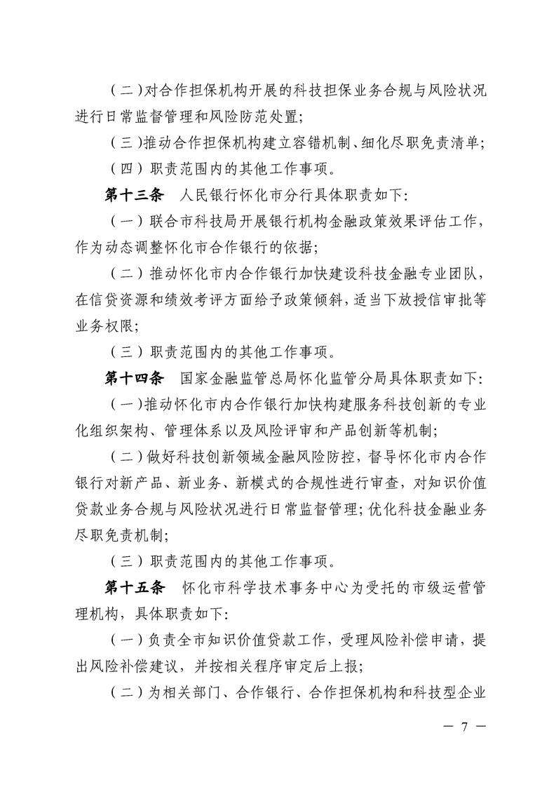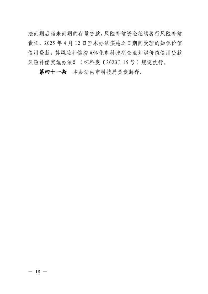 關(guān)于印發(fā)《懷化市科技型企業(yè)知識價值貸款風(fēng)險補償實施辦法》的通知