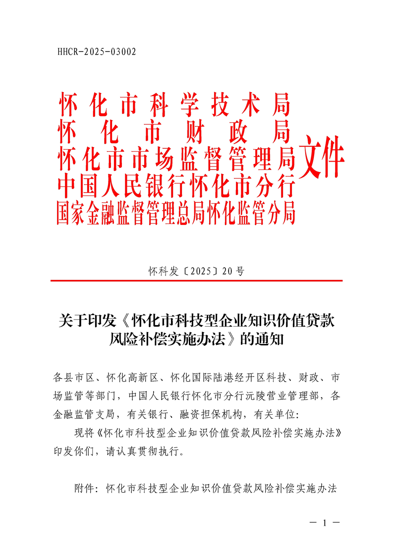 索引號:431200/2025-033178 文號:懷科發(fā)〔2025〕20號 統(tǒng)一登記號:HHCR-2025-03002