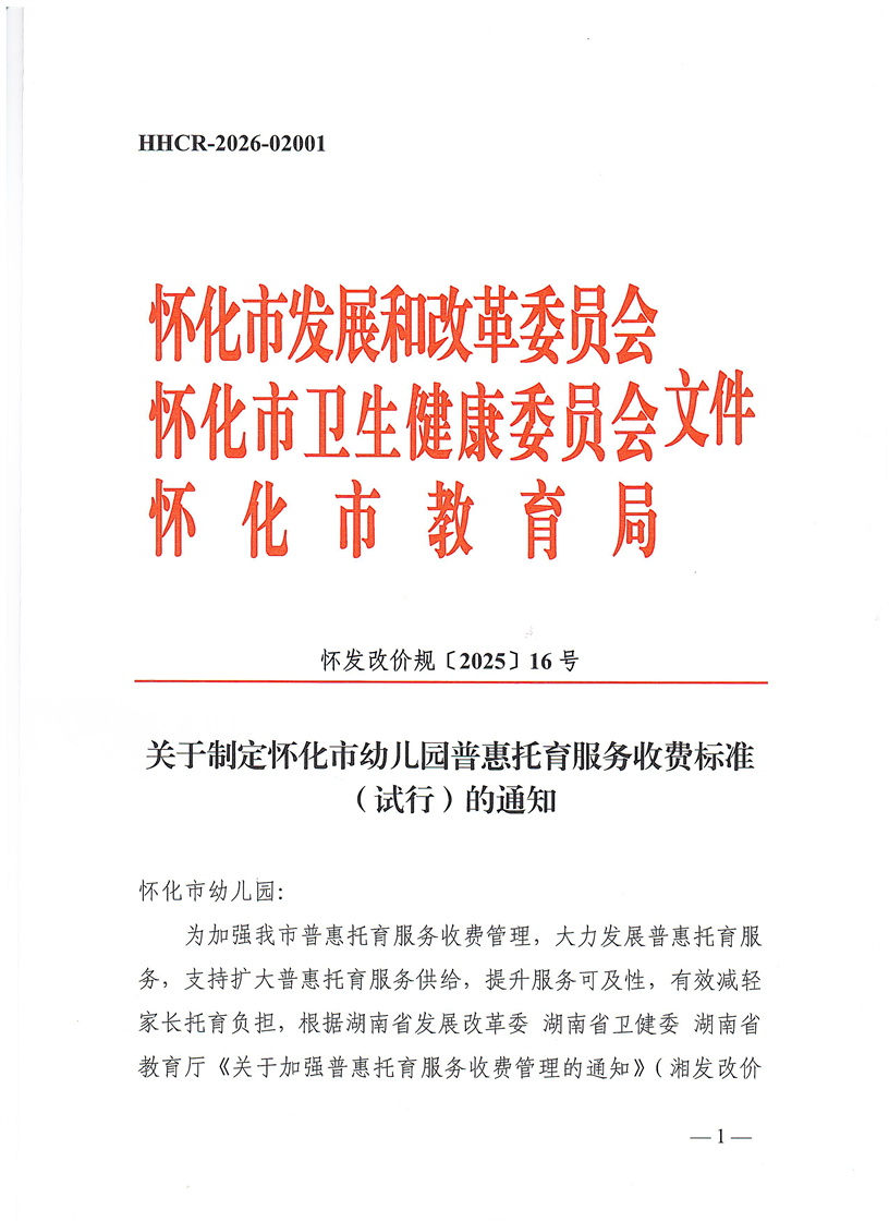 索引號:431200/2026-000839 文號:懷發改價規〔2025〕16號 統一登記號:HHCR-2026-02001