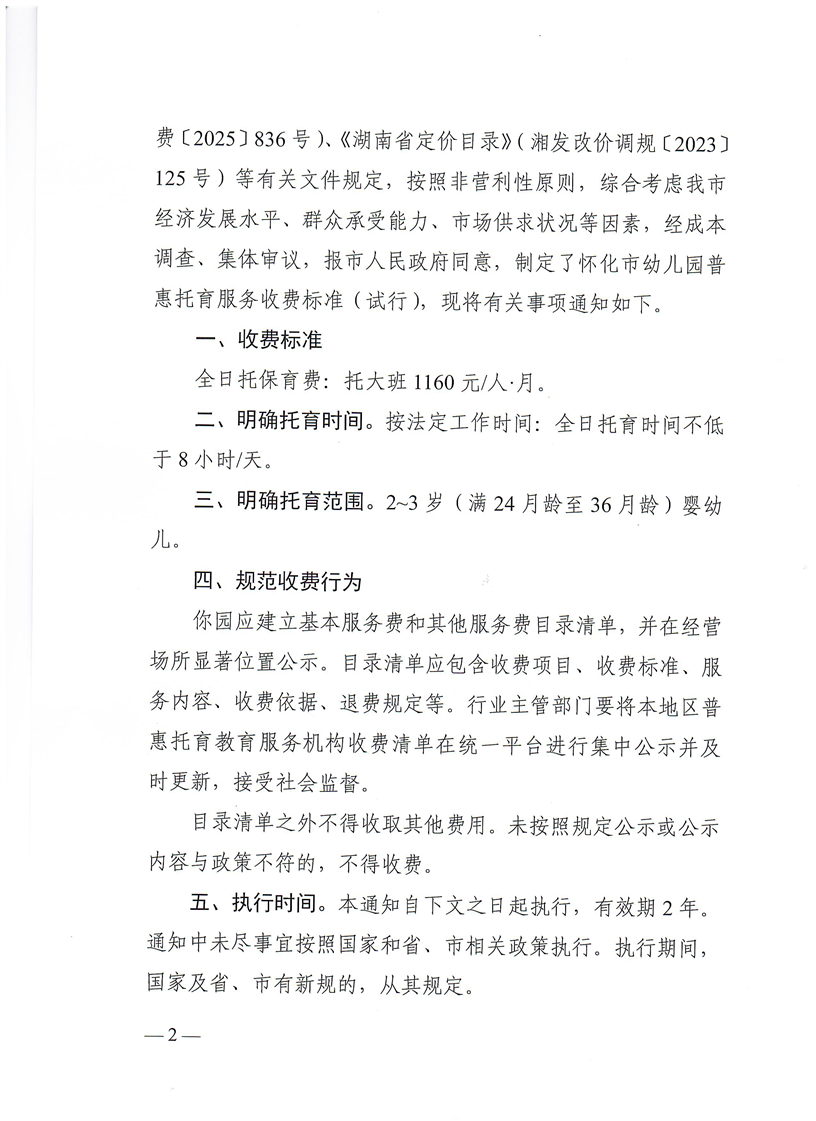 關于制定懷化市幼兒園普惠托育服務收費標準(試行)的通知