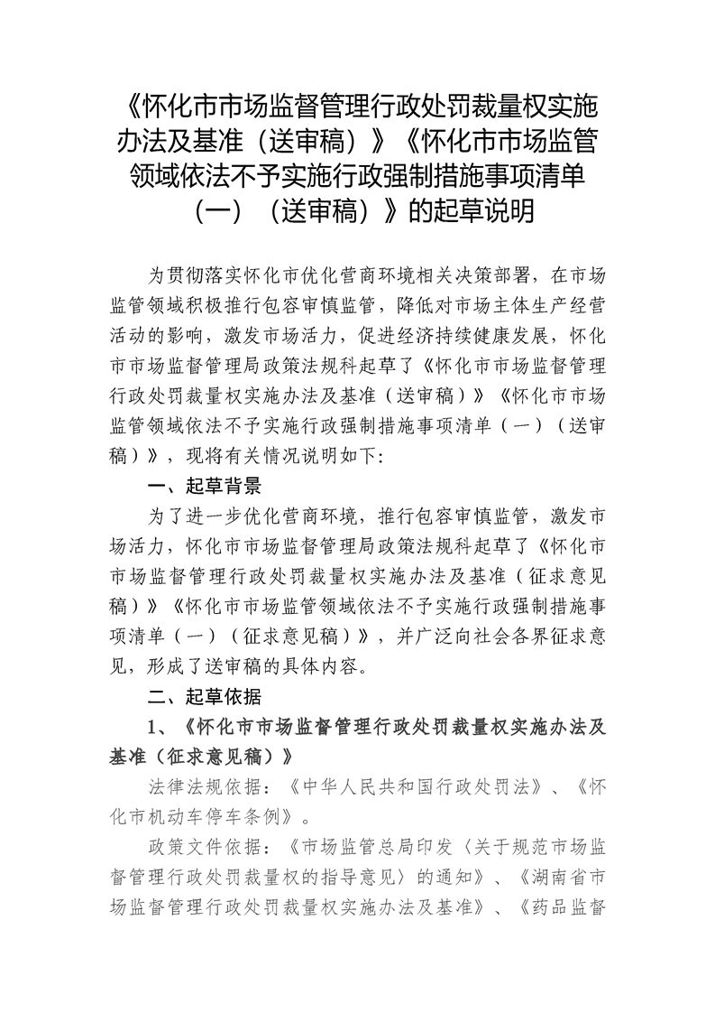懷化市市場監督管理局解讀《懷化市市場監督管理行政處罰裁量權實施辦法及基準(送審稿)》《懷化市市場監管領域依法不予實施行政強制措施事項清單(一)(送審稿)》