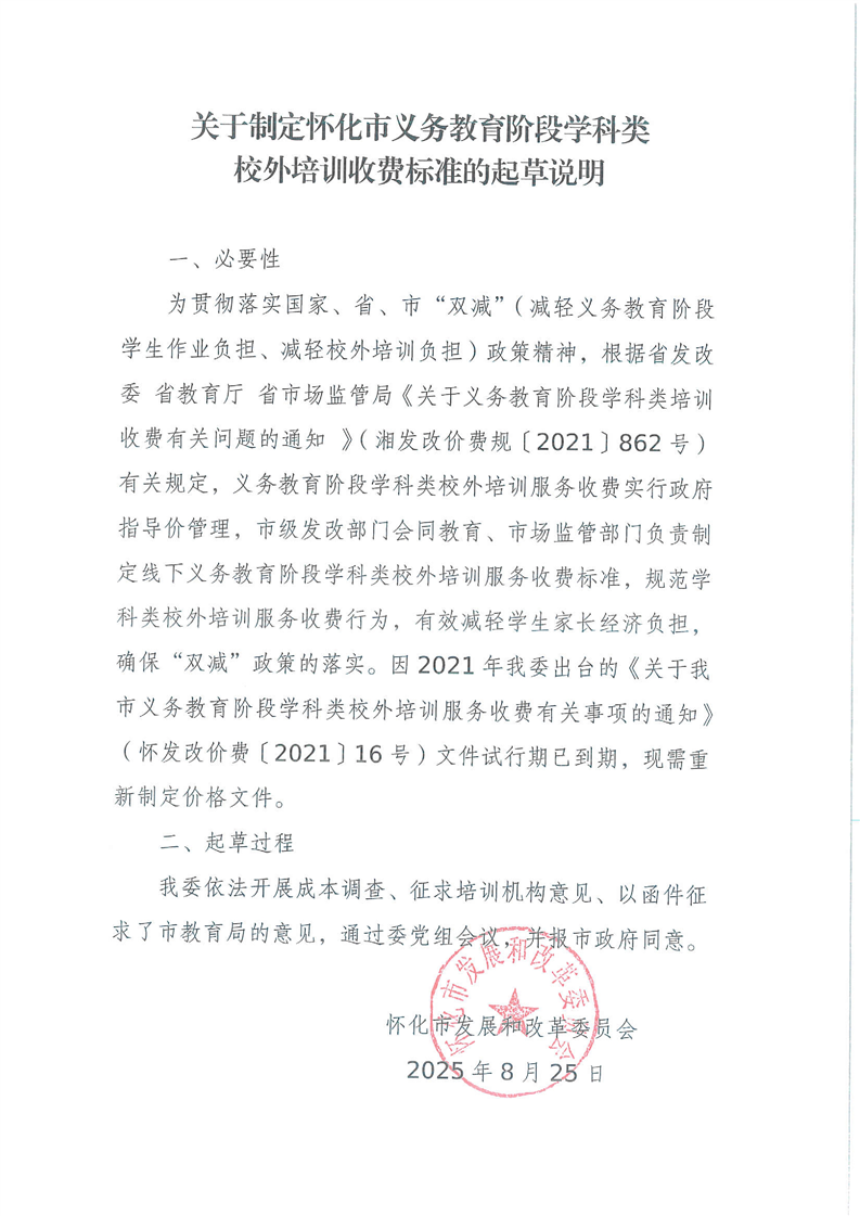 懷化市發展和改革委員會解讀《關于懷化市義務教育階段學科類校外培訓收費有關問題的通知》