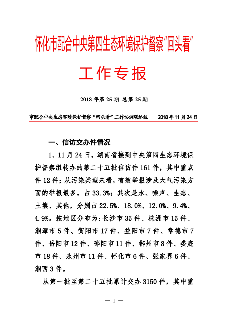 第二十五期 懷化市配合中央生態環境督察回頭看工作專報
