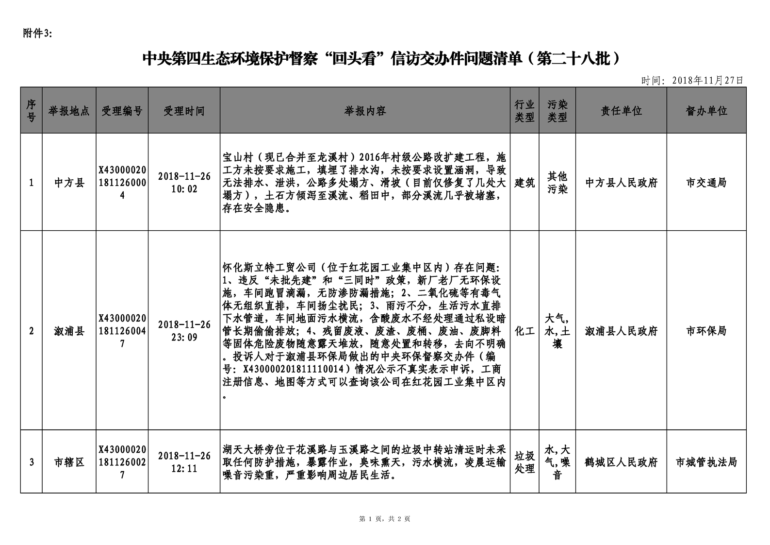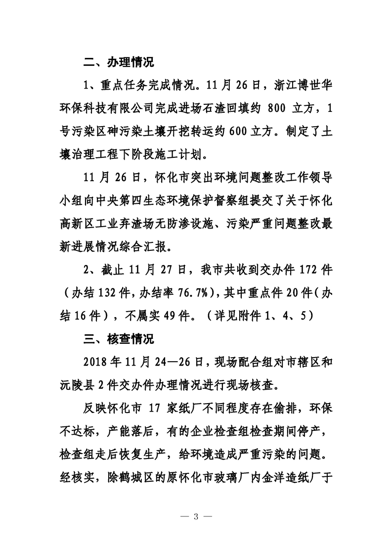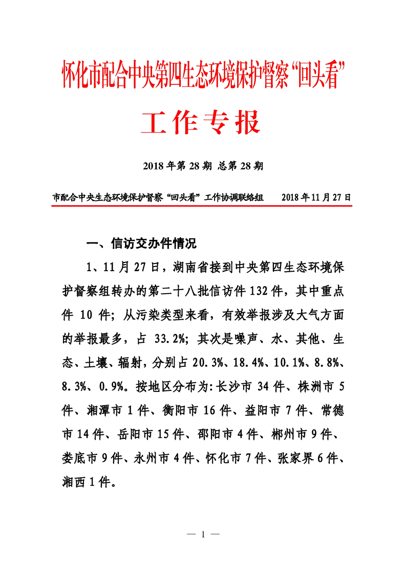 第二十八期 懷化市配合中央生態環境督察回頭看工作專報