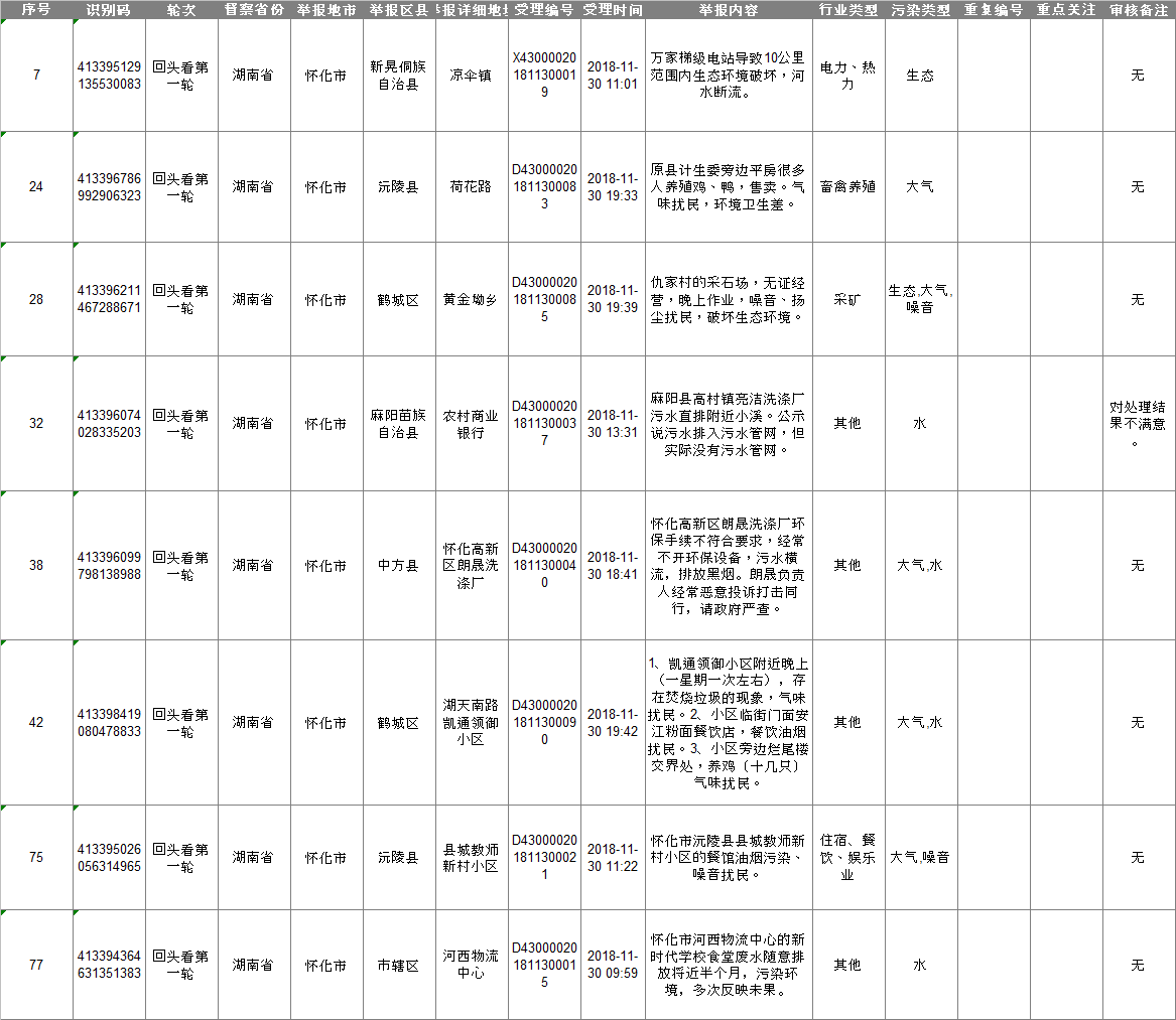 中央生態環保督察“回頭看”轉辦信訪件(12.1)
