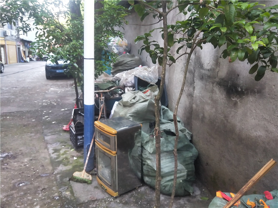 5月13日,記者在懷化城區一條與迎賓路相連的背街小巷看到,巷內堆放了各類廢棄物,影響了周邊環境衛生。(懷化日報全媒體記者 李普兵 攝)