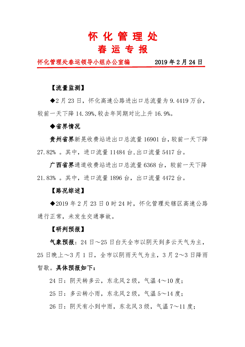 2019年懷化市高速公路春運(yùn)專報(bào)(第33期)