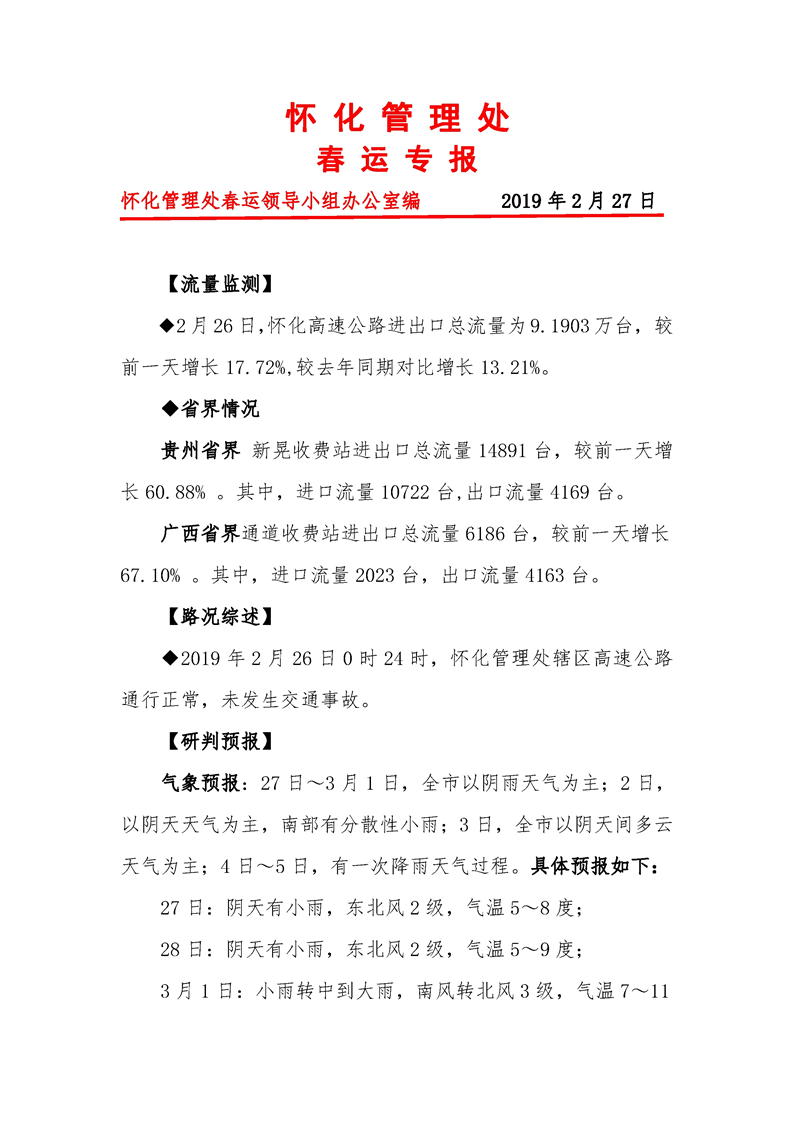 2019年懷化市高速公路春運(yùn)專報(bào)(第36期)
