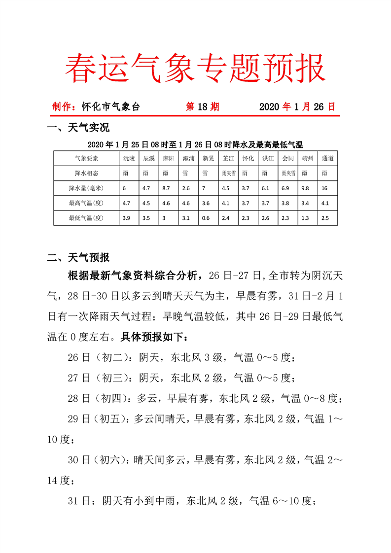 春運氣象專題預報 第18期