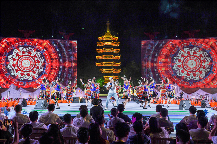 (9月17日晚,“樂動五溪 歌行千年”村歌聯(lián)唱在鶴城區(qū)鶴鳴洲舉行。)