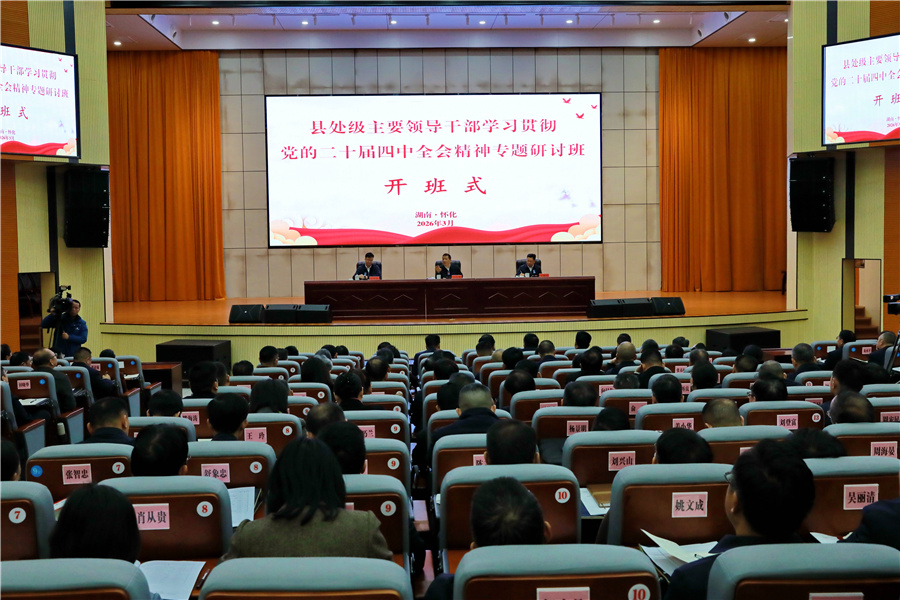 (3月4日上午,縣處級主要領(lǐng)導(dǎo)干部學(xué)習(xí)貫徹黨的二十屆四中全會精神專題研討班開班式在市委黨校舉行。懷化日報全媒體記者 彭軍 攝)
