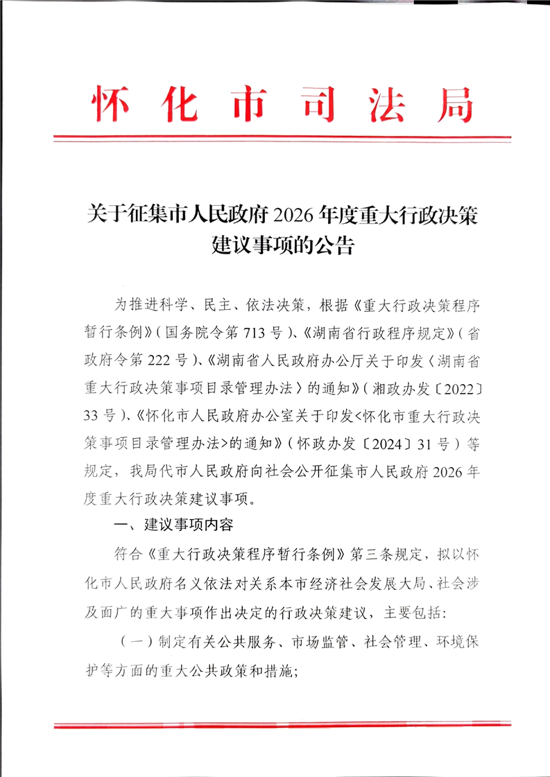 關于征集市人民政府2026年度重大行政決策建議事項的公告