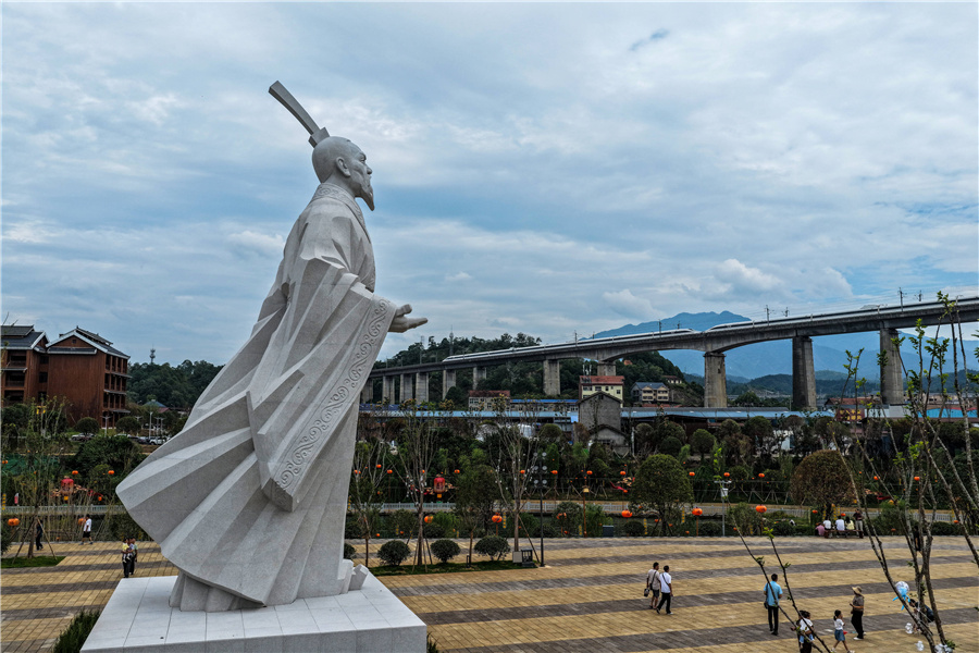 (圖為天問(wèn)島上屈原雕像。懷化日?qǐng)?bào)全媒體記者 潘雨 攝)