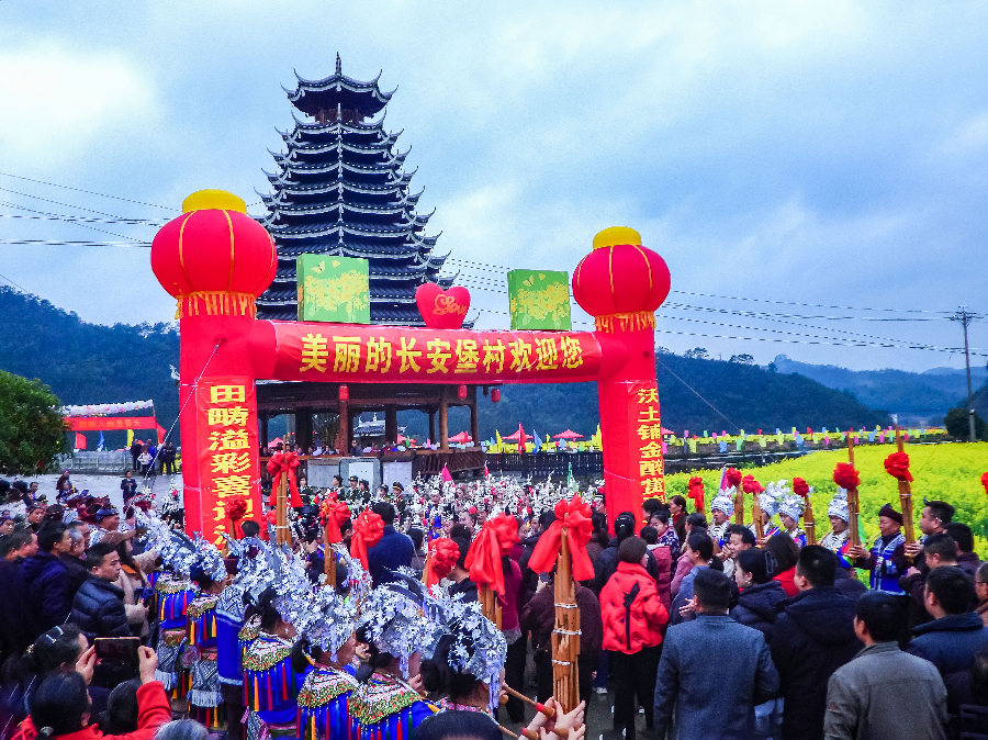 2月26日,通道侗族自治縣雙江鎮長安堡村舉行油菜花節,吸引了眾多游客和市民前來觀景、游玩。