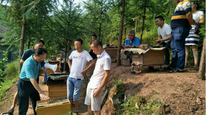 華中農大張新軍教授在涼亭坳鄉尹家嶺村現場指導和培訓養蜂知識