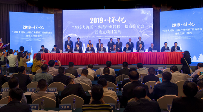 2019年4月14日下午,2019年湖南——粵港澳大灣區投資貿易洽談周懷化市“對接大灣區·承接產業轉移”招商推介會暨重點項目簽約儀式在深圳舉行,現場簽約24個項目,合同金額達139.6億元。