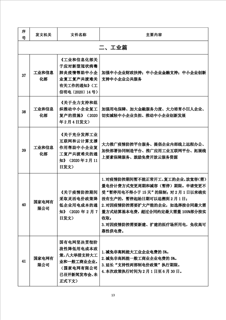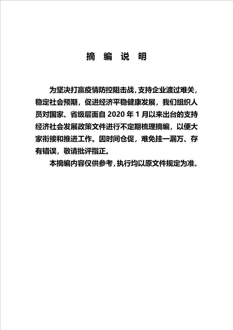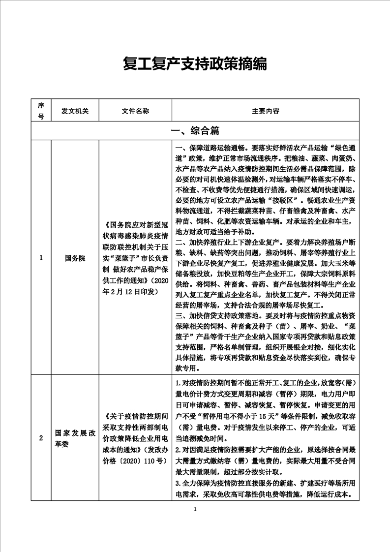 新冠肺炎疫情防控期間復工復產支持政策摘編(第1期)