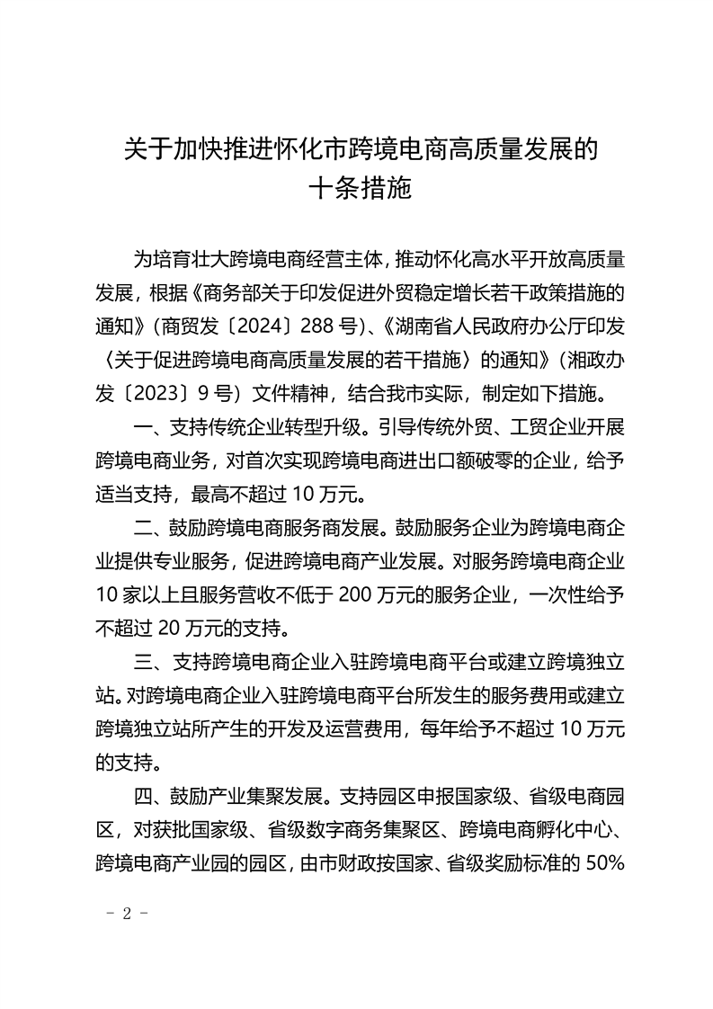關于印發《關于加快推進懷化市跨境電商高質量發展的十條措施》的通知