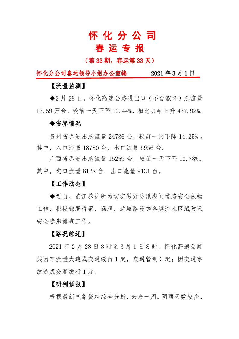 省高速集團懷化分公司第33期春運專報