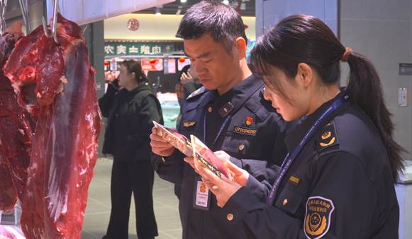 在主城區(qū)大型超市,執(zhí)法人員聚焦春節(jié)消費熱門品類,選取不同品牌預(yù)包裝食品,仔細查看生產(chǎn)日期、有效期、執(zhí)行標(biāo)準(zhǔn)、配料表等信息,嚴(yán)防“三無”食品、過期食品流入市場;同時,依托農(nóng)產(chǎn)品質(zhì)量安全可追溯系統(tǒng),掃碼查驗牛肉、豬肉等畜禽肉承諾達標(biāo)合格證、檢疫檢驗證等情況。檢查過程中,執(zhí)法人員現(xiàn)場督促超市經(jīng)營者嚴(yán)格落實食品安全主體責(zé)任,嚴(yán)把進貨查驗關(guān),定期自查并及時清理臨期、不合格食品,切實從源頭防范食品安全風(fēng)險。