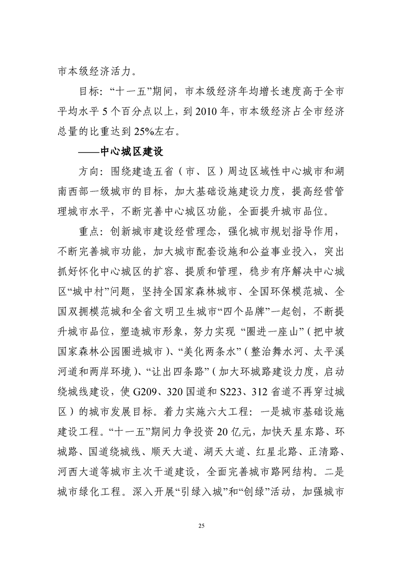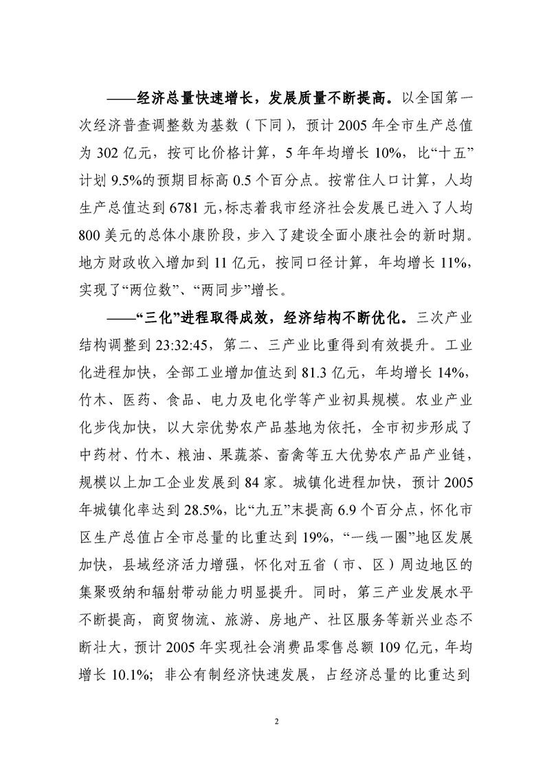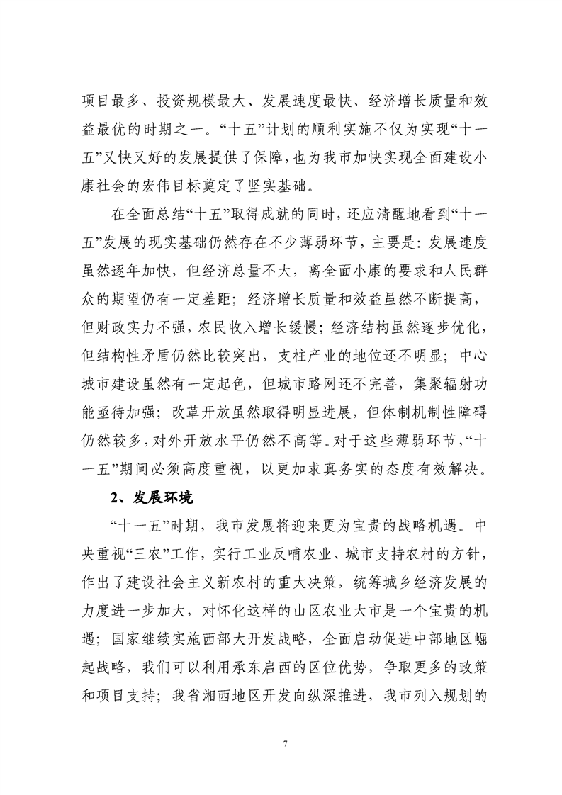 懷化市“十一五”規(guī)劃綱要