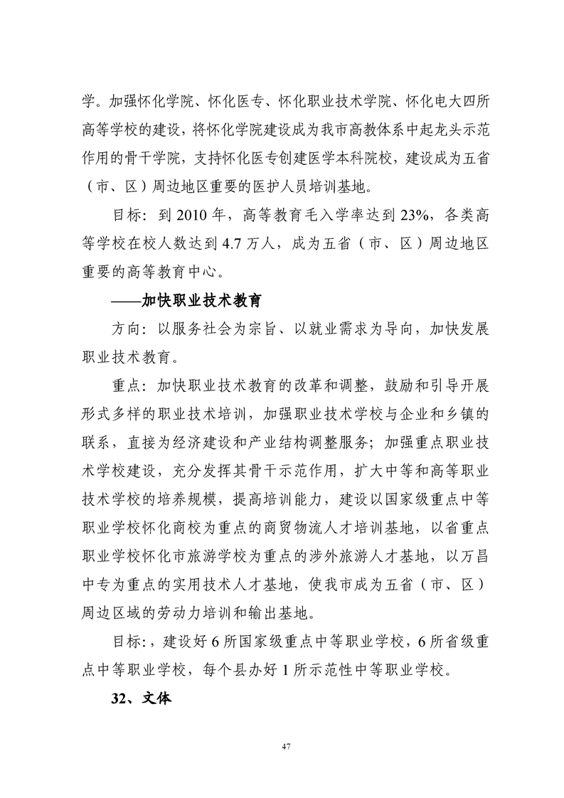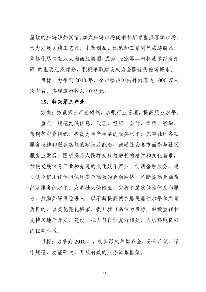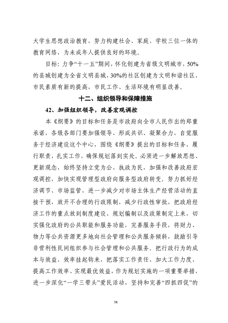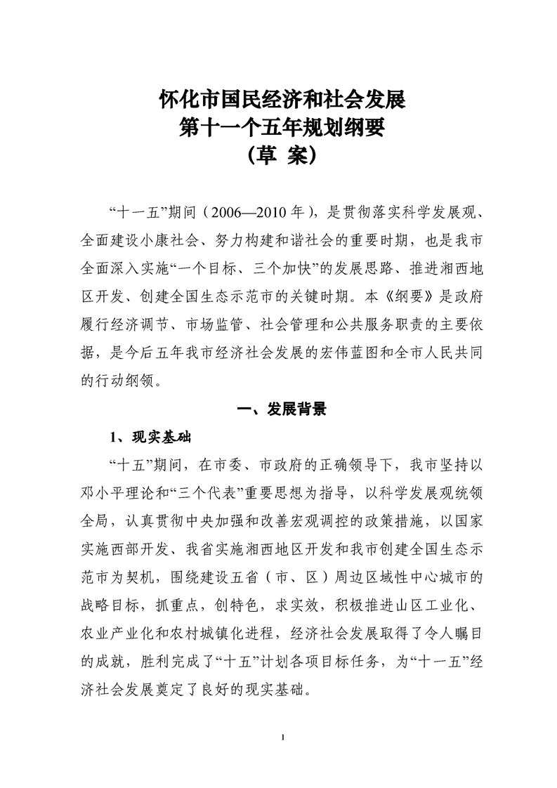 懷化市“十一五”規(guī)劃綱要