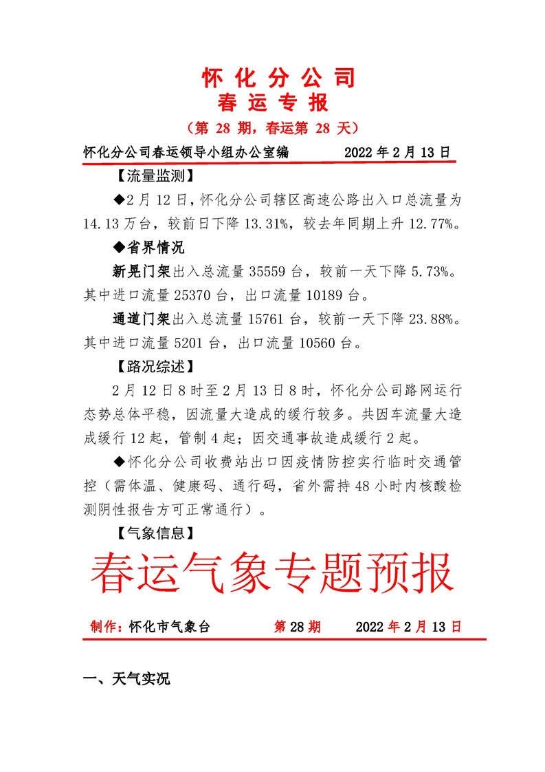 2022年高速懷化分公司第28期春運專報