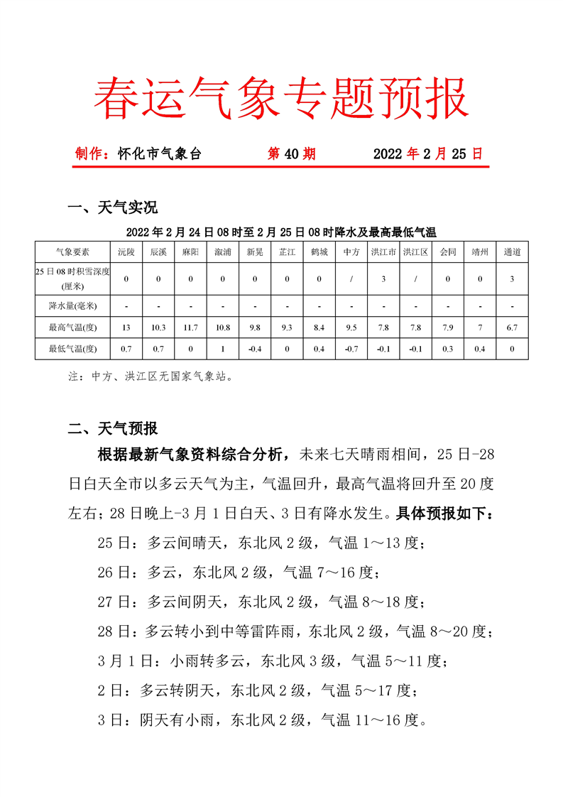 春運氣象專題預報 第40期
