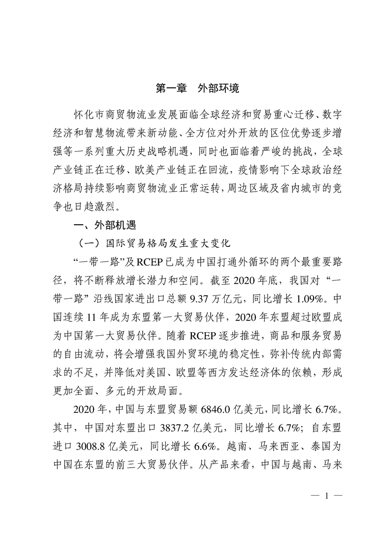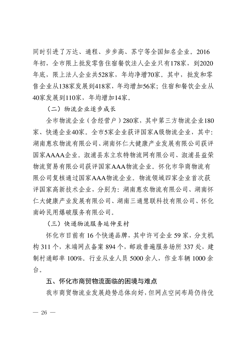 懷化市“十四五”商貿物流發展規劃