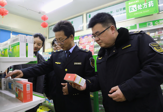 在湖南老百姓懷仁藥房連鎖有限公司公園路店,檢查組重點對經營資質、購銷渠道、儲存陳列、處方藥品是否憑處方銷售等情況進行檢查,督促企業合法合規經營。