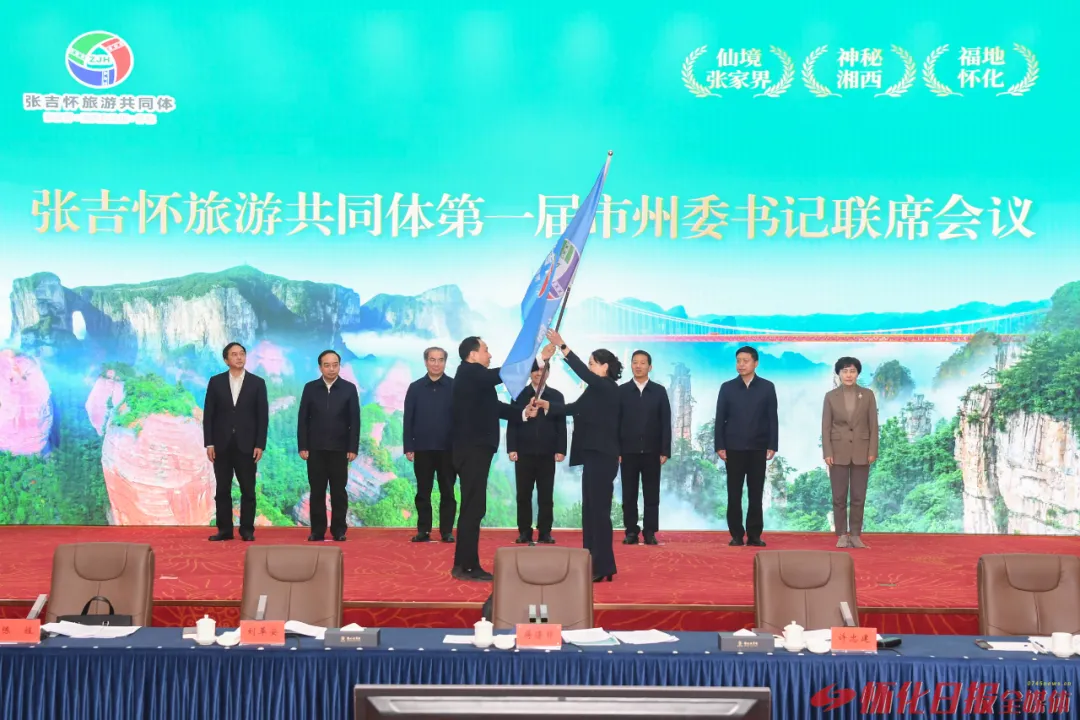 現場,懷化市接過張吉懷旅游共同體會旗,成為新一屆輪值主席單位,未來將以張家界、湘西自治州、懷化的順序每年輪值。