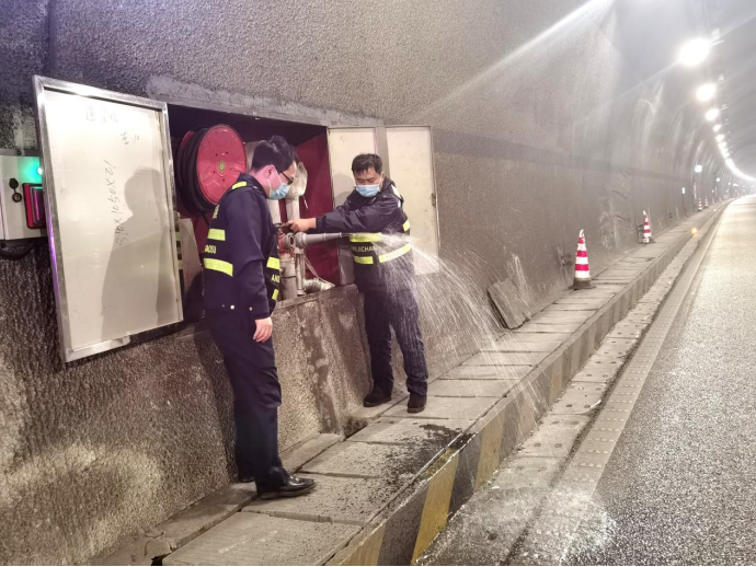 (檢查隧道內消防設施。)
